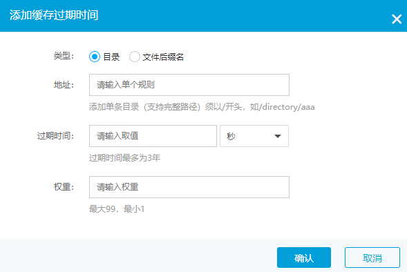 缓存策略2:目录为/www/dir/aaa过期时间设置为1小时,权重设置为70。