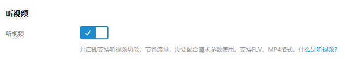 按照路径【控制台】→【CDN管理】→【域名管理】→【视频相关】→【听视频】,打开开关即可。