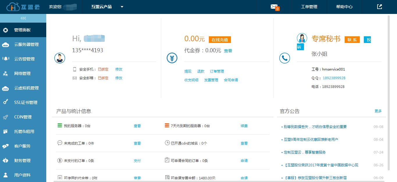 Step3:登录成功后,点击右上角“我的互盟云” 即可进入到管理页面;