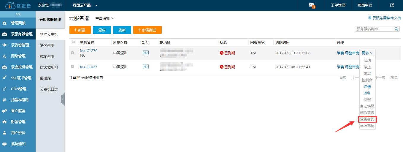 Step4:接着点击云服务器管理,可看到您账户下有几台云服务器;
